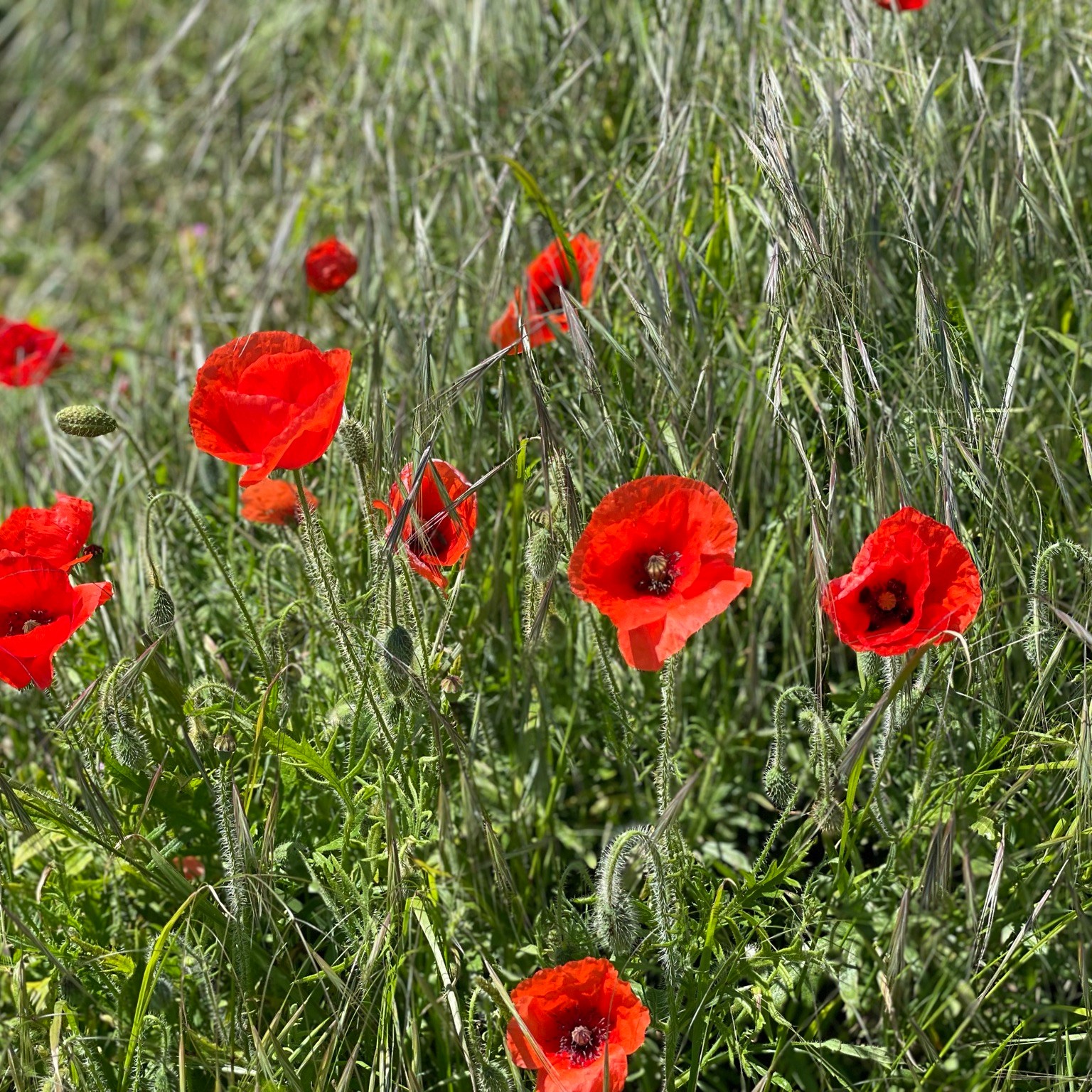Clock wise from top left – A bit of everything, small scabious, dog rose, bladder campion, corn poppy, oxeye daisy